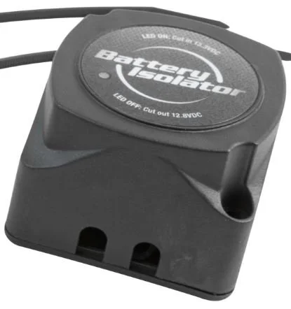 Automatically isolates secondary (accessory) battery from primary (starting) battery. Prevents primary battery from draining when vehicle is stopped while still allowing charging of both batteries as vehicle is running.